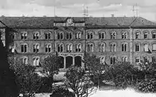 He entered the Imperial German Navy (Kaiserliche Marine) as a Seekadett (midshipman) on 3 April 1907 at the German Imperial Naval Academy in Kiel, where he received his initial infantry training.[4] He spent his initial year on Freya (9 May 1907 – 1 April 1908) for his practical training on board and his first world cruise, before attending an officers course at the German Imperial Naval Academy in Kiel. His comrades nicknamed him "Pee Ontgens" after a character from the book Das Meer (The Sea) by Bernhard Kellermann, which was one of his favourite books.[2] Lütjens graduated 20th of 160 cadets from his "Crew 1907" (the incoming class of 1907), and was thereafter promoted to Fähnrich zur See (ensign) on 21 April 1908.[5] Starting on 1 April 1909, he underwent naval artillery training at the Naval Artillery School[Tr 1] in Kiel-Wik and then participated in a torpedo course on board Württemberg on 1 July 1909.[6]