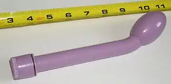 A G-spot vibrator is a sex toy with female and male varieties. The female version of the device is built to massage the G-spot, described as a bean-shaped[1] area of the vagina. Some women report that it is an erogenous zone which, when stimulated, can lead to strong sexual arousal, powerful orgasms and female ejaculation.[2] The male version of the G-spot vibrator is used for massaging the prostate for both sexual and health-related reasons.[3]