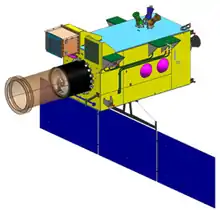 Geo Imaging Satellite or GISAT is an Indian imaging satellite class for geostationary orbit with a high temporal resolution, meant for providing near real time imaging with fast revisit capability and real time monitoring.[9] Two identical satellites will provide resolution in the range of 42 to 318 m.[1][10] It will carry multi-spectral (Visible and Near-InfraRed, and Short Wave-InfraRed), multi-resolution (42 to 318 m) imaging instruments.[11] The first satellite; EOS-03 (GISAT-1) was launched on 12 August 2021 but failed to reach orbit as cryogenic upper stage of GSLV could not ignite.