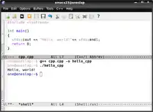 GNU Emacs is a free software text editor. It was created by GNU Project founder Richard Stallman. In common with other varieties of Emacs, GNU Emacs is extensible using a Turing complete programming language. GNU Emacs has been called "the most powerful text editor available today".[5] With proper support from the underlying system, GNU Emacs is able to display files in multiple character sets, and has been able to simultaneously display most human languages since at least 1999.[6] Throughout its history, GNU Emacs has been a central component of the GNU project, and a flagship of the free software movement.[7][8] GNU Emacs is sometimes abbreviated as GNUMACS, especially to differentiate it from other EMACS variants.[9] The tag line for GNU Emacs is "the extensible self-documenting text editor".[10]