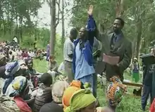 Gacaca, Living Together Again In Rwanda? is the first documentary film in a trilogy by Anne Aghion examining the aftermath of the Rwandan genocide. Directed by Anne Aghion and produced by Dominant 7, Gacaca Productions, and Planète, this 2002 film won UNESCO's Fellini Prize.[1][2] Filmed in Rwanda, the language of Gacaca is Kinyarwanda with English subtitles.[3] In Kinyarwanda, gacaca means "grass", which was the location of the reparation trials in Rwanda.[4]