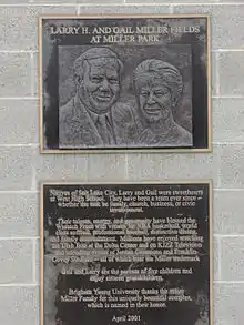 In 2000, Brigham Young University announced that the Millers had made a significant financial contribution towards the new 4,000-seat, $7 million baseball and softball complex. Built on campus, the project was named Miller Park and the softball field was christened Gail Miller Field and the baseball field is called Larry H. Miller Field.[19]