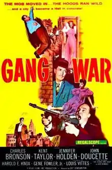 Gang War is a 1958 American drama film directed by Gene Fowler, Jr. and written by Louis Vittes. The film stars Charles Bronson, Kent Taylor, Jennifer Holden, John Doucette, Gloria Henry and Gloria Grey. The film was released in July 1958, by 20th Century Fox.[1][2][3]