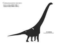 Gannansaurus (meaning "Gannan lizard") is an extinct genus of somphospondylan sauropod dinosaur known from the late Late Cretaceous Nanxiong Formation of Ganzhou Basin, Jiangxi Province of southern China. It is known from specimen GMNH F10001 which consists of a single, nearly complete dorsal vertebra and a mid-caudal vertebra. Gannansaurus was first named by Lü Junchang, Yi Laiping, Zhong Hui and Wei Xuefang in 2013 and the type species is Gannansaurus sinensis. Gannansaurus shares some characters with Euhelopus, indicating that it is more closely related to it rather than to other titanosauriforms.[1]