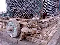 Thirukarukavoor Temple is dedicated to Shiva and is located near Papanasam, Thanjavur, Tamil Nadu, India. The nearest railway station is in Papanasam, about 3 kilometres from the place. The nearest airport is in Trichy. Thirukarukavoor is situated in Thirukkarugavur, a village located on the banks of Vettar River, a tributary of River Cauveri.[9] People from Chennai and northern parts of Tamil Nadu may reach Kumbakonam and from there to Thirukarukavoor. People from east and southern parts of Tamil Nadu must reach Thanjavur and from there to Thirukarukavoor. The temple is one of the prominent and most visited temples in the district.[10] The temple has a 5-tier Rajagopuram and an outer prakaram(closed precincts of a temple). The temple is 460 ft by 284 ft and has a gopuram facing east and also has an entrance facing south.[2] There is a garden in the southern side and a Vasantha Mandapam in the north.[2] The sanctum of Mullaivananathar is in the second precinct and the shrine of Amman is located parallel to the Swami shrine. The shrine is Nandi is located in front of Swami, with the Palipeeda and Dwajasthambam located right behind the Nandi.[2] There is a Nataraja hall and a yagasalai. There are separate shrines for Nataraja, Somaskanda, Karpaga Vinayagar and Navagrahas.[2] There are separate shrines for Sekkizhar, Nalvar, Santhanachariar, Dakshinamurthy, Nrithivu Nayakkar, Arthanariswarar, Mahalakshmi, Arumugam, Brahma, Durga and Chandikeswarar.[2] There are four water bodies associated with the temple. Sheerakundam (Parkulam) is the temple tank located opposite to the temple and the water is believed to be born out of the milk of Kamadenu, the sacred cow.[11] Sathyakupam is a well located in between the shrines of Swami and Amman. Brahma Theertham is a tank located north east of the temple - Nataraja gives theerthavari during Karthigai Thivatharai in this tank.[11] Vritha Kaveri is the branch of Kaveri, Vettaru (also called Mullivay) - the stepshore is the bank for many of the temple occasions.[11] The temple tree, Mullai tree is located in between the Swami shrine and Chandikeswarar shrine.[11] In 2020, a hall for Annadhanam was added by the Hindu Religious and Endowment Department, by the Government of Tamil Nadu.[12]