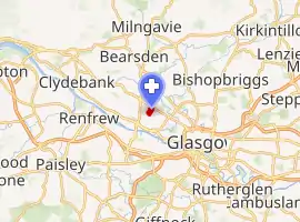 Gartnavel General Hospital is a teaching hospital in the West End of Glasgow, Scotland. The hospital is located next to the Great Western Road, between Hyndland, Anniesland and Kelvindale. Hyndland railway station is adjacent to the hospital. The name Gartnavel is derived from the Gaelic Gart (field or enclosure) Ubhal (apple) – i.e. "a field of apple trees".[2] It is managed by NHS Greater Glasgow and Clyde.[3]