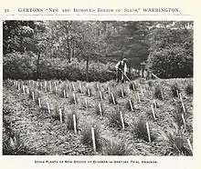 Generous publicity followed in the press, together with the publication of articles by botanists in the Journal of the Royal Agricultural Society of England, and in the Transactions of the Royal Highland and Agricultural Society of Scotland in 1894 and 1898.[5] Professor Robert Wallace (1853–1939) of the University of Edinburgh said 'Under the system originated by Mr John Garton an infinite number of new and distinct breeds of oats, barleys, wheats, clovers and grasses have been produced'.[6]