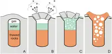 A gas emission crater is recent arctic phenomenon where melting permafrost releases enormous volumes of trapped gas in an explosive event.[1]