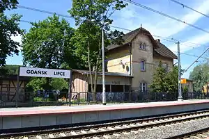 Gdańsk Lipce railway station is a railway station serving the city of Gdańsk, in the Pomeranian Voivodeship, Poland. The station is located on the Warsaw–Gdańsk railway. The train services are operated by Przewozy Regionalne.
