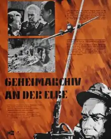 Geheimarchiv an der Elbe (Secret Archive on the Elbe) is an East German war film set in the last days of World War II in Europe[1] and directed by Kurt Jung-Alsen. It stars Hans-Peter Minetti, Albert Hetterle and Günther Simon. Based on a novel by Alexander Nassibow Drehbuch, it was released in 1963.[2] The film follows the exploits of a Soviet communist officer,[3] Major Kerimov (Minetti), who is sent to recover a Secret Archive from the Nazis. The film was Jung-Alsen's last film for DEFA.[4]
