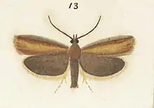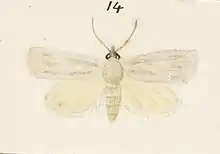 The wingspan is about 23 mm. The forewings are pale greyish, mixed with yellow whitish and more yellowish tinged towards the dorsum. The hindwings are whitish, tinged greyish on the dorsal half.[2]