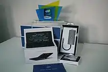The Gemini PDA is a personal digital assistant[1] designed by Planet Computers[2] in association with Martin Riddiford, who formerly worked on the Psion Series 5 in the 1990s,[3] and crowdfunded via Indiegogo in 2017.[4] The Gemini bucks the trend of modern smartphones in its screen being primarily used in landscape aspect, and having a keyboard, i.e. taking on the form of a subnotebook.