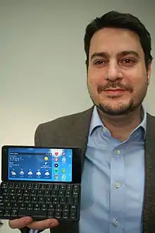 ![]() Gemini PDA, held by Davide Guidi of Planet Computers | |