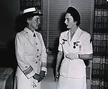 As early as May 19, when Galard was still in captivity, U.S. Congresswoman Frances P. Bolton urged United States Secretary of State John Foster Dulles to invite the French nurse to the United States.[14] When she arrived in New York City in July, she was met at the plane by Mayor Robert Wagner and a large crowd. Congresswoman Bolton introduced her as a "symbol of heroic femininity in the free world" and a Ticker Tape parade down Broadway in her honor was attended by perhaps 250,000 spectators. She was then given a reception at city hall.[14]