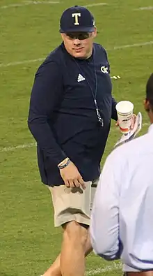 William Geoffrey Collins (born April 10, 1971)[2] is an American football coach and former player. On December 7, 2018, Collins was announced as the head coach at Georgia Tech.[3][4] He was previously the head coach at Temple University,[5] and had served in the past as defensive coordinator for the University of Florida and Mississippi State University.[6]