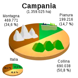 From a physical point of view, the Campania region can be divided into two areas: one mountainous and one flat:[2]