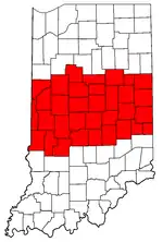 The eastern third of this region centers around the Fort Wayne area and the Maumee River basin.