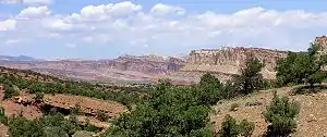 Nearly 10,000 feet (3,000 m) of sedimentary strata are found in the Capitol Reef area, representing nearly 200 million years of geologic history of the south-central part of the U.S. state of Utah. These rocks range in age from Permian (as old as 270 million years old) to Cretaceous (as young as 80 million years old.)[1] Rock layers in the area reveal ancient climates as varied as rivers and swamps (Chinle Formation), Sahara-like deserts (Navajo Sandstone), and shallow ocean (Mancos Shale).