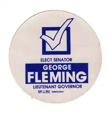 George Tyree Fleming (June 29, 1938 – December 6, 2021) was an American politician and professional football player. A multi-positional player, he played college football for the Washington Huskies. Fleming was a member of AAWU champion 1959 and 1960 Washington Huskies football teams, playing in the 1960 and 1961 Rose Bowls. He earned second team All-Coast halfback and Co-Player of the Game honors after the Huskies' win in 1960 Rose Bowl. For his contribution to the Rose Bowl game, he was inducted into the Rose Bowl Hall of Fame on December 31, 2011.[2][3]