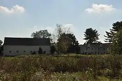 The George Giddings House and Barn is a historic First Period farm in Essex, Massachusetts. Both the house and the barn are estimated to have been built in the 1690s, and contain construction details unique in Essex County First Period buildings. The house was originally built as a single two story cell structure with a large chimney on one side, which was then widened with the addition of a second cell on the other side of the chimney. In the 19th century a number of alterations were made: the central chimney was removed, the entry of the house was reoriented from south to north by the addition of a new central door on the north face, and two new chimneys were added along the north elevation. The house has modern additions to the rear (south) side. The barn is of a similar vintage to the house, although it started with only five windows, and was extended at some point by the addition to the east of a sixth bay. It is one of a very few surviving First Period barns.[2]