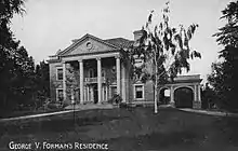 In 1893, Forman built the beaux arts classical mansion, now known as the Forman-Cabana House, for his family at 824 Delaware Avenue in Buffalo in the present day Delaware Avenue Historic District. The home was designed by Green & Wicks with E. B. Green serving as the principal designer. The home is fronted by prominent columns and features yellow Roman brick, and the round arched front entrance has flanking paired fluted Ionic pilasters. Today, the residence is home to Child and Family Services and the Stanley G. Falk School, which is located in the carriage house.[3]