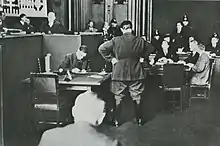 Dimitrov's calm conduct of his defence and the accusations he directed at his prosecutors won him world renown.[10] On August 24, 1942, The Milwaukee Journal declared that in the Leipzig Trial, Dimitrov displayed "the most magnificent exhibition of moral courage ever shown anywhere."[11] In Europe, a popular saying spread across the Continent: "There is only one brave man in Germany, and he is a Bulgarian."[12] Dimitrov, Tanev, and Popov were acquitted. Two months later, on 23 December, the USSR secured the release of the three Bulgarians, who were granted Soviet citizenship.