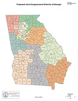 List of members of the Georgian United States House delegation, their time in office, district maps, and the districts' political ratings according to the CPVI. The delegation has a total of 14 members, with eight Republicans and six Democrats as of 2021.