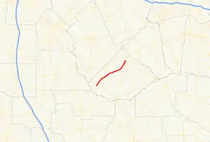The route begins at an intersection with SR 117 near China Hill (about thirteen miles (21 km) northeast of Fitzgerald). It heads northeast to an intersection with SR 165 before it meets its northern terminus, an intersection with US 319/US 441/SR 31 in the southern part of McRae.[1]