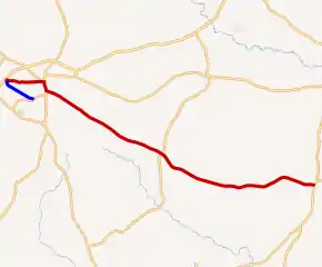 It begins at an intersection with Kaolin Road and South Saffold Road in the southwestern part of the city near Kaolin Field, an airport serving the city. The highway heads northwest and leaves the city limits. It travels through a forested area and intersecting no paved roads until it curves to the north-northwest to its northern terminus, an intersection with the SR 242 mainline (West Church Street), only one-tenth mile (0.16 km) from the latter's western terminus at SR 24. The road is signed north-south and has a speed limit of 45 miles per hour (70 km/h).[9]