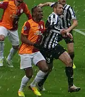 During the 2008–09 season, Chiellini remained as first choice in central defence alongside Nicola Legrottaglie. Chiellini scored his first goal in Europe on 13 August 2008 as Juve beat Artmedia Petržalka 4–0 in the first leg of the UEFA Champions League third qualifying round tie.[14] Four days later, he injured his left knee again during the Trofeo Luigi Berlusconi against AC Milan and missed the start of the Serie A season,[15] returning to duty in September starting in each of Juve's first three Champions League group games. At the end of the year, he was named Serie A Defender of the Year for 2008 at the annual Oscar del Calcio awards ceremony. On 10 March 2009, Chiellini was sent off for a second bookable offense during the Champions League first knockout round second leg tie at home in a tightly contested match against Chelsea, but Juventus were eliminated 3–2 on aggregate after holding the former English champions to a 2–2 draw.