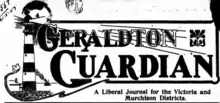 The Geraldton Guardian was established at Geraldton, Western Australia on 1 October 1906 to serve the Victoria and Murchison Districts. It was launched on principles of liberal democracy, state rights, nationalism and British preference.[1]