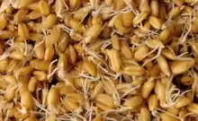 Germinated wheat (Persian: جوانه گندم) or sprouted wheat, wheat sprout is a product of germinating wheat seeds in a wet and relatively warm environment in a process called sprouting. It is commonly known and used in Iranian cuisine. However, it is sometimes used instead of barley in the form of malt (early stage sprout) for making beer.