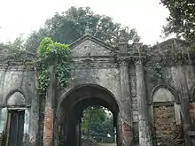 The ancient village Ghughudanga is situated on the east side of Purnobhoba River and 8 miles away from Dinajpur Sadar at Auliapur Union. Kotiborsho city was situated there, which was Kotiborsho Nogori and it was the administration center of Guptopal. Later it also known as Debkot. In 1204-05 Muhammad bin Bakhtiyar Khilji after conquering the northern and western parts of Bengal, first established his city in Lakhnauti but later he established his city at Devkot. He came back from his failed Tibet expedition and he died at Devkot. In this Debkot in the reign of Muslim Damdama was erected. But nowadays it is in ruins. Near this ruined city, India's South Dinajpur district's Gangarampur town is situated.[1]