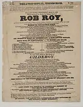Several popular versions of his life were published such as Lives and Exploits of English Highwayman, Pirates and Robbers.[8] The time period of his activities is moved forward and his execution given as being in 1658 with various fantastical and highly exaggerated elements added. Gilderoy has been placed in the same category as Robin Hood, Twm Siôn Cati and the aforementioned Rob Roy McGregor.[9]