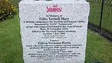 - "Memorial to campaigner Giles Hart killed in 7/7 bombings unveiled". The Times. London. 7 July 2008. Retrieved 3 February 2009.