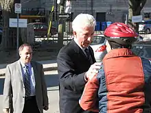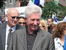 Gilles Duceppe (French pronunciation: [ʒil dysɛp]; born July 22, 1947) is a Canadian retired politician, proponent of the Quebec sovereignty movement and former leader of the Bloc Québécois. He was a Member of Parliament in the House of Commons of Canada for over 20 years and was the leader of the sovereigntist Bloc Québécois for 15 years in three stints: 1996, 1997-2011 and in 2015. He was Leader of the Official Opposition in the Parliament of Canada from March 17, 1997, to June 1, 1997. He resigned as party leader after the 2011 election, in which he lost his own seat to New Democratic Party (NDP) candidate Hélène Laverdière and his party suffered a heavy defeat; however, he returned four years later to lead the party into the 2015 election.[1][2] After being defeated in his own riding by Laverdière again, he resigned once more.[3]