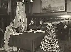 In December 1885, Krog co-founded the Women's Voting Association (Norwegian: Kvinnestemmerettsforeningen)[3] alongside nine other women from the Association for Women's Rights. Her co-founders included Ragna Nielsen, Anne Holsen and Anna Rogstad. Krog was leader of the association from 1885 to 1897.[9] She had been inspired by reading The History of Woman Suffrage, a set of historical volumes sent by American women's rights activist Susan B. Anthony.[10] The Women's Voting Association was open only to women members, with the philosophy that women should be responsible for achieving their own political equality.[1]