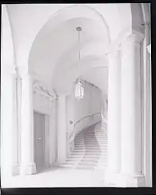 In Bologna, he decorated the staircase of Palazzo Savini and the chapel Cappella di San Antonio in San Bartolommeo di Porta Ravegnana. Giovanni Carlo also designed a decorative scheme for the high altar of San Petronio, Bologna, for the Bolognese Pope Benedict XIV.[1] In 1752, he was summoned by Joseph, the King of Portugal, to Lisbon, where he designed the Ópera do Tejo adjoining the royal palace, but the opera house was destroyed seven months after completion by the 1755 earthquake. Giovanni Carlo Galli-Bibiena died in Lisbon.[1]
