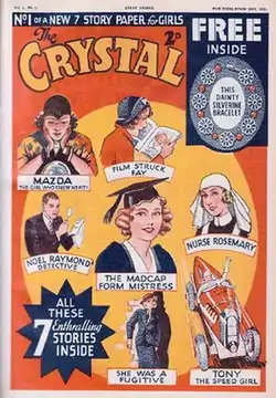 ![]() The cover of the first issue of the Girls' Crystal story paper (28 October 1935). | |