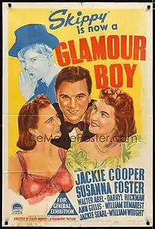 Glamour Boy is a 1941 American comedy film directed by Ralph Murphy and written by Val Burton, F. Hugh Herbert and Bradford Ropes. The film stars Jackie Cooper, Susanna Foster, Walter Abel, Darryl Hickman, Ann Gillis, William Demarest and Jackie Searl. The film was released on December 5, 1941, by Paramount Pictures.[1][2]