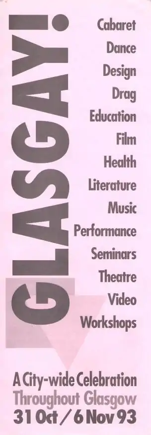 From 1993 to 2014 it was part of the diversity of Glasgow's cultural scene, an annual Lesbian, Gay, Bisexual and Transgender Arts Festival held usually in October/November, formerly organised by GALA Scotland Ltd.
