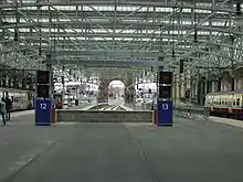 Automatic ticket barriers were installed at Glasgow Central and three other city-centre stations from 2011 as part of a crackdown on fare-dodging to increase ticket revenue. This follows barriers being erected at Queen Street Station in 2004, ending ScotRail's "open stations" policy under which staffed and previous yellow ticket automatic barriers had been scrapped during the 1980s to encourage more passengers; tickets were checked on trains instead. ScotRail finalised negotiations with Network Rail over the project in June 2010,[31] with the project completed in February 2012, covering High Level Platforms 3 to 15 and Low Level Platforms 16 and 17.[32] Platforms 1 and 2 were left without barriers, as they are mostly used by long-distance express services with a high proportion of passengers carrying heavy luggage.
