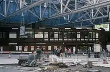 In 1998, a five-year renovation programme was initiated by Railtrack, which saw the trainshed completely re-roofed and internally refurbished by Bovis Lend Lease[26] – which also included the restoration of Hielanman's Umbrella. The 1980s vintage mechanical pixel-style destination boards were later replaced around 2005 with an array of LED-style destination boards. The final improvement, the upgrading of the upstairs restaurant area, was completed in 2005.