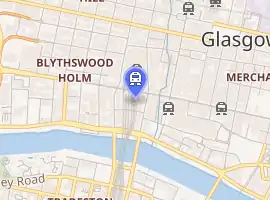 A taxi rank is to the north of the station, while buses operate from the adjacent streets. St Enoch and Buchanan Street Subway stations are within a few minutes' walk.