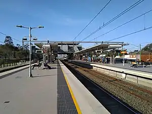 An additional track was opened to the west of the station in 1995 as part of the Glenfield - Ingleburn passing loop.[3] This unelectrified track was used by freight and long-distance passenger trains. In December 2012, the track was incorporated into the Southern Sydney Freight Line and became freight only.