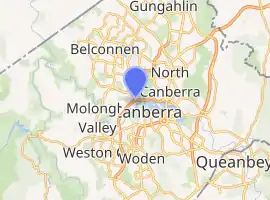 Glenloch Interchange is Canberra's only major interchange which connects Tuggeranong Parkway with Parkes Way, William Hovell Drive and Caswell Drive (Gungahlin Drive Extension).[1][2] Following a major reconstruction lasting from 2007 to mid-2008, the interchange now operates without traffic lights. A surprising feature was the retention of an unused bridge from the previous alignment which led from the centre of the Parkes Way/Caswell Drive loop, passing east over two northbound roads, before petering out to the east. This was finally removed in late 2010 during roadworks to upgrade the new interchange to dual carriageway standards.