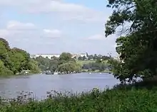 In 1872 the island, then called Petersham Ait, was bought by a Richmond-based waterman named Joseph Glover for £70 (equivalent to £6,000 in 2020);[1] advertising it for resale in 1895. Sir John Whittaker Ellis, Mayor of Richmond,[1] had a house along the aristocratic row on the place with the highest, definitive Thames Arcadia view.[3] This is on the steep terrace of Richmond Hill above public pleasure gardens and he declined to buy the island at £5,000 (equivalent to £590,000 in 2020) so suggested that the Richmond Corporation should be approached.[1] The view itself had been painted by John Wootton in about 1740 as A View From Richmond Hill. An English Arcadia.