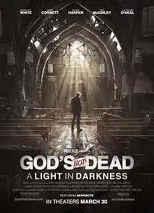 God's Not Dead: A Light in Darkness is a 2018 American Christian drama film written and directed by Michael Mason. It is the third installment of the God's Not Dead series, following the 2014 film God's Not Dead and its 2016 sequel. It stars David A. R. White, John Corbett, Shane Harper, Benjamin Onyango, Ted McGinley, Jennifer Taylor, Tatum O'Neal, Shwayze and Cissy Houston.[2]