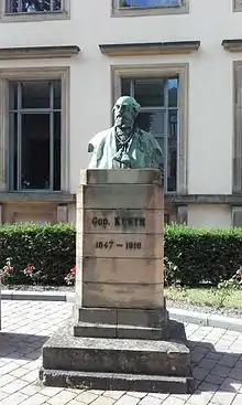 In 1873 Kurth became the first person to be awarded the "special doctorate in historical sciences", for a dissertation on Cato the Elder.[2] The same year, he became chair of Medieval History and Belgian History at the University of Liège. One of his students, Henri Pirenne, became a noted historian. Léon-Ernest Halkin considered them the founders of the scientific method of history in Belgium. Kurth modelled his pedagogy on that instituted by the German historian Leopold von Ranke at the University of Berlin. On 7 May 1894 he was elected a member of the Royal Academy of Science, Letters and Fine Arts of Belgium.[4] He was a member of the committee that organised the Exposition de l'art ancien au Pays de Liège for the 1905 International exposition in Liège.[5]
