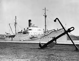 The Navy purchased the ship in 1930 and transferred it to the then-named California Nautical School.[3] Commissioned as the C.T.S. California State on January 23, 1931, the cadets who lived aboard quickly gave her the nickname "Iron Mother."[3] In December 1941, the ship was renamed the T.S. Golden State. She sailed on 12 major ocean cruises, including one around the world in 1933. She was also in service when the California Nautical School became the California Maritime Academy.